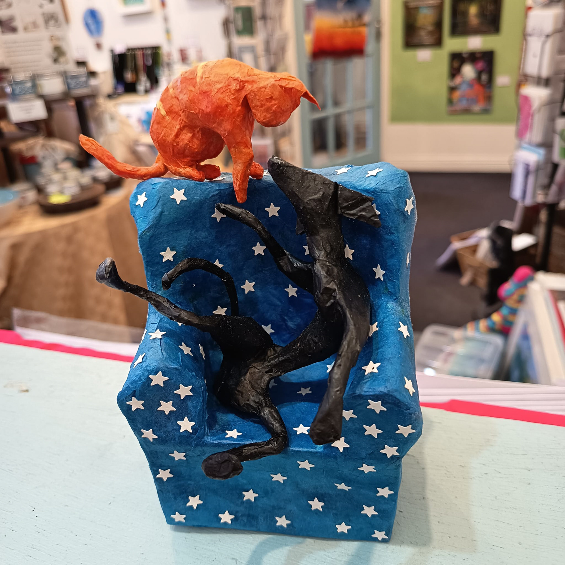 Sculpture - 5.5" high, Armchair, Lurcher and Brindle Cat! An exclusive bespoke 'one of a kind' sculpture piece -Price - Work in development €50