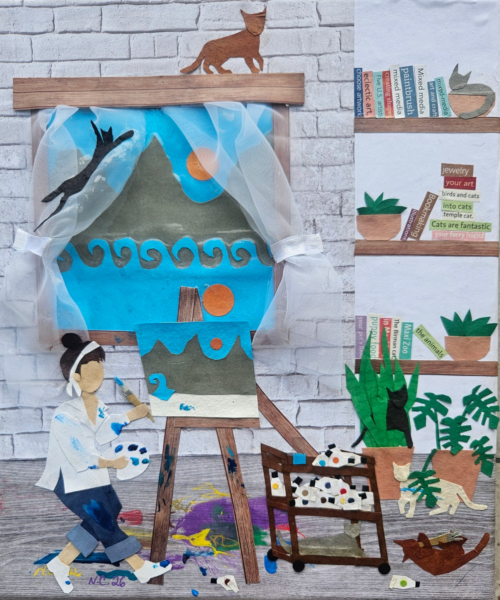 December 2025 - 3 New Cat Themed Paper Paintings by Nicola arrived
